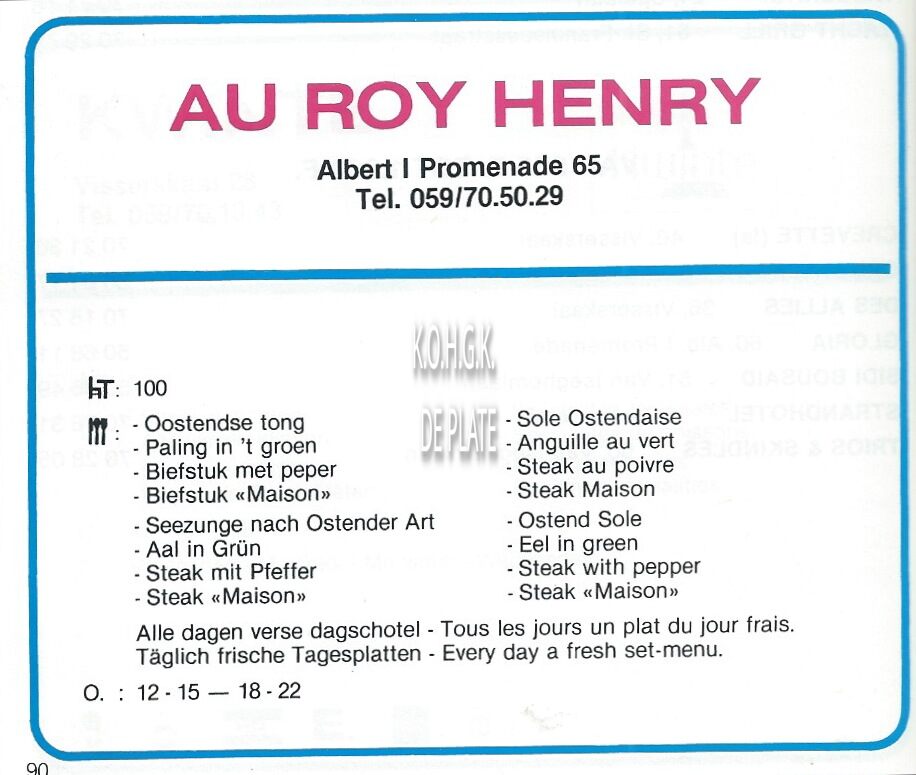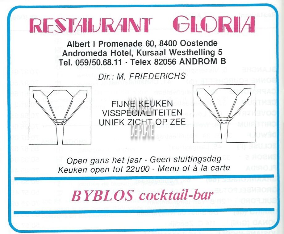 Advertentie : Restaurant Gloria. Albert I-promenade 60, Oostende