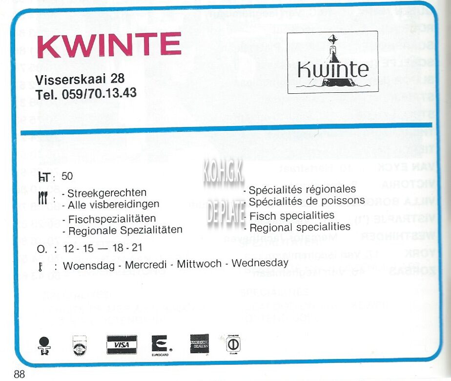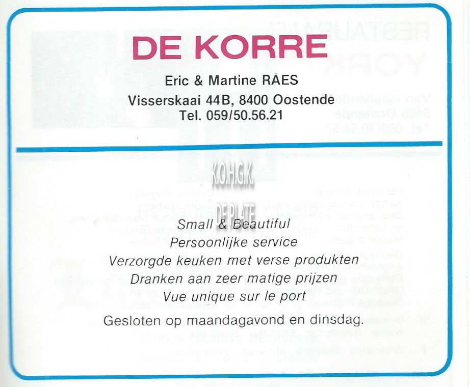 Advertentie : De Korre. Restaurant. Visserskaai 44B, Oostende