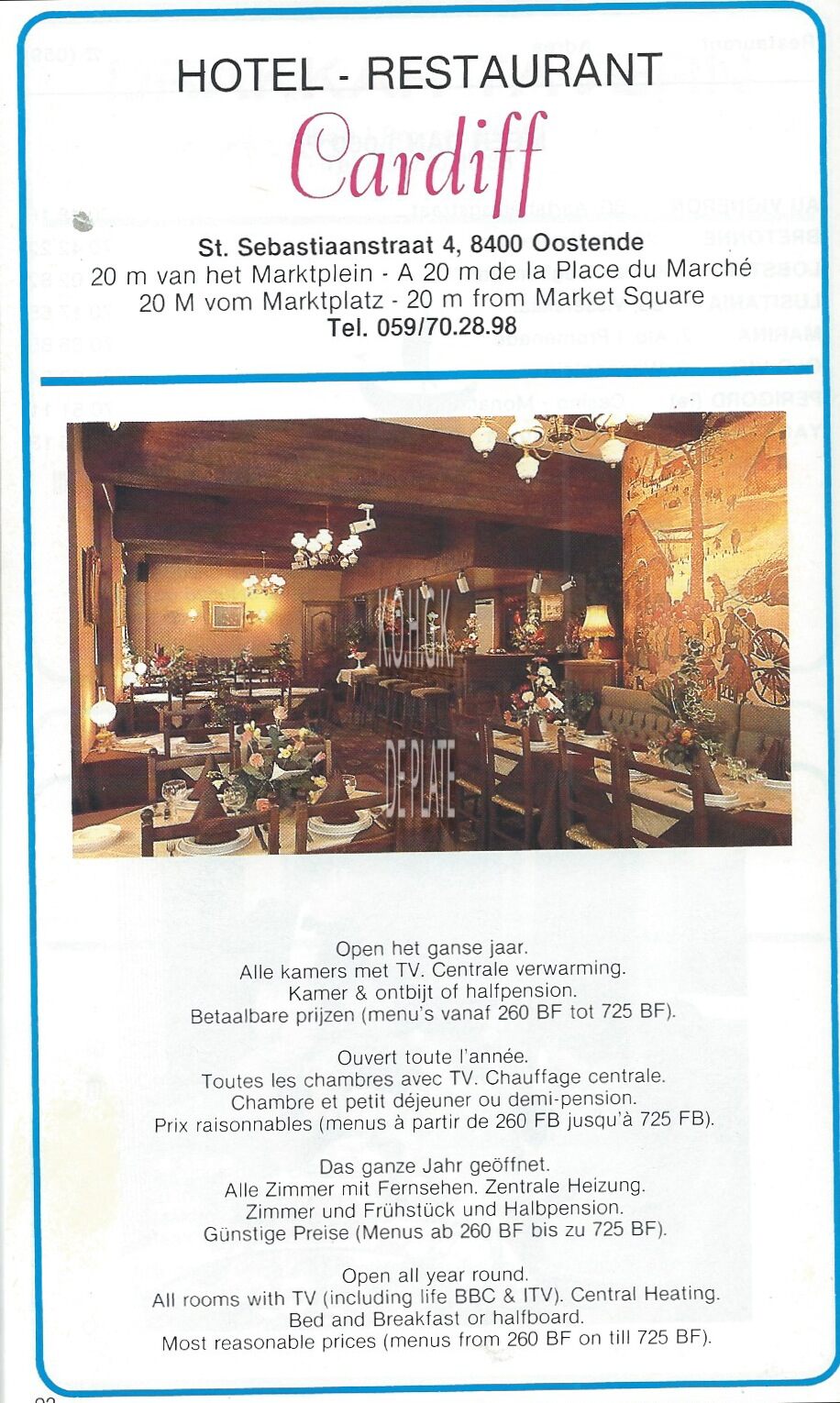 Advertentie : Lijst van hotels en restaurants 1985