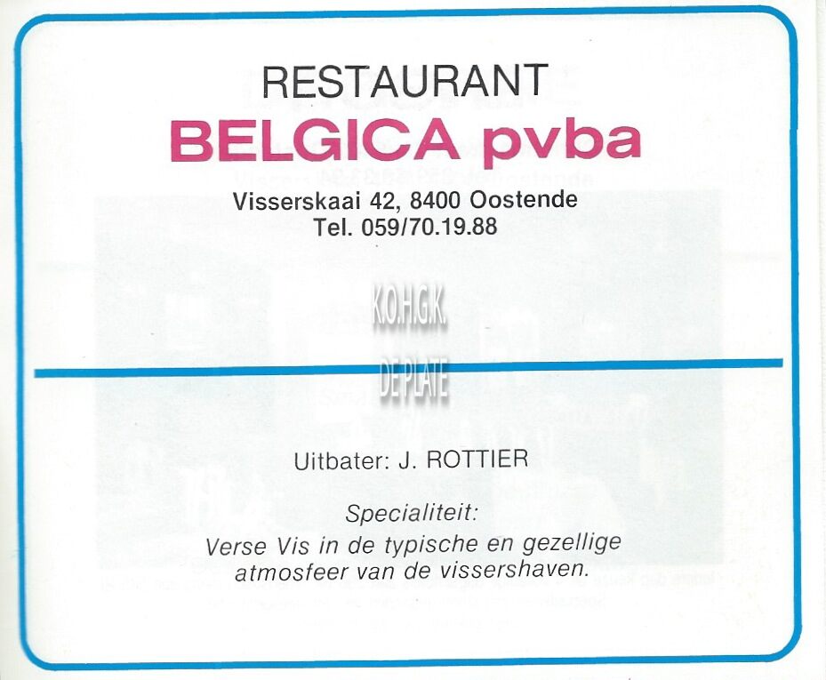 Advertentie : Restaurant Belgica. Visserskaai 42, Oostende