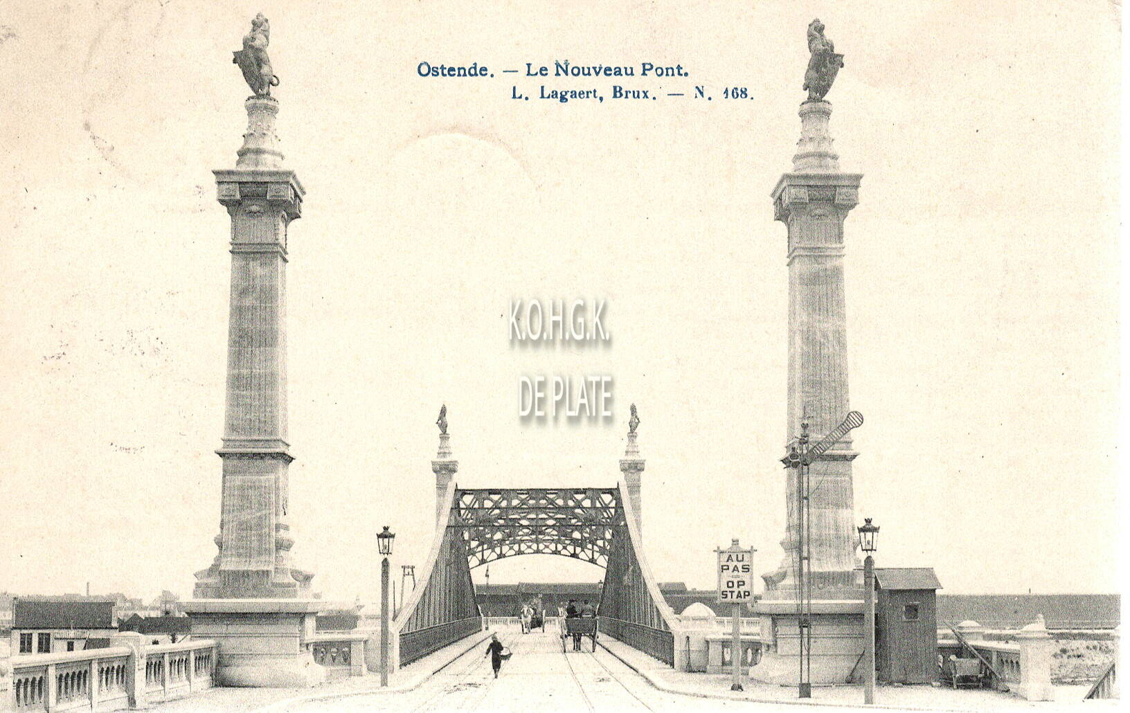 Lagaert N°168. - Ostende - Le nouveau pont. . - De staande leeuwen op de brugpilonen zijn van Jules Lagae. De beelden werden tijdens de Eerste Wereldoorlog door de bezetter weggenomen.