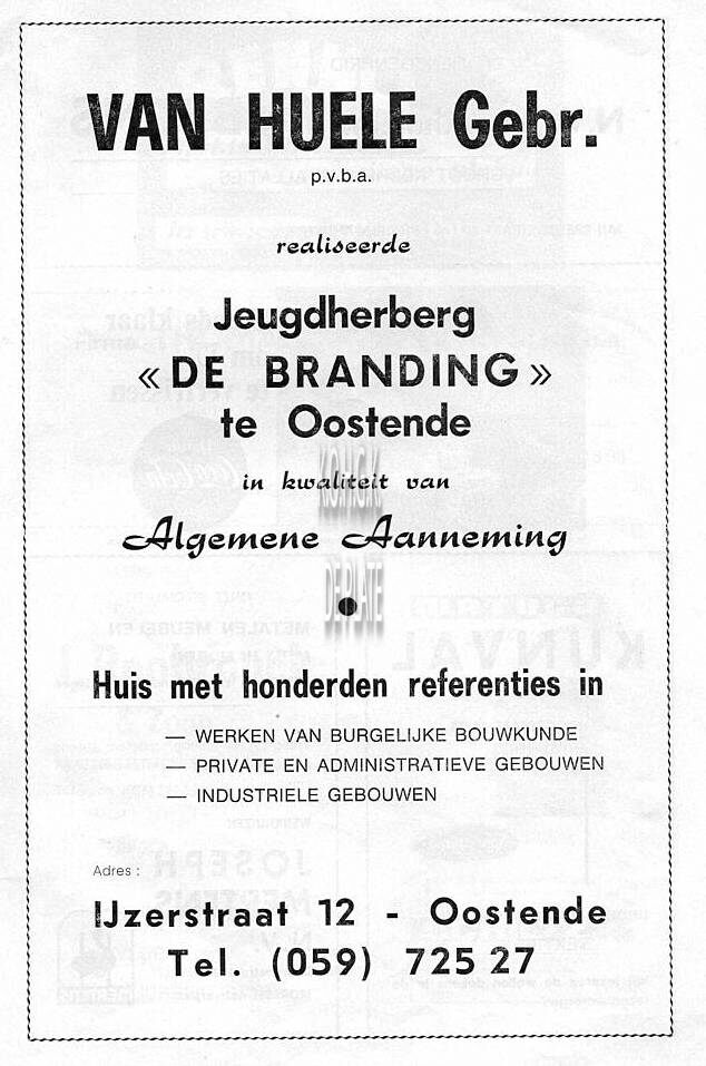 Verbouwingswerken uitgevoerd door J. Casteleyn (Gistel). Inrichten toneel door pvba Herentalse Metaalwerken Leysen (Herentals). Centrale verwarming auditorium door pvba Vandeputte en Veys (Gentbrugge). Jaarverslag Stad Oostende 1965, p.152