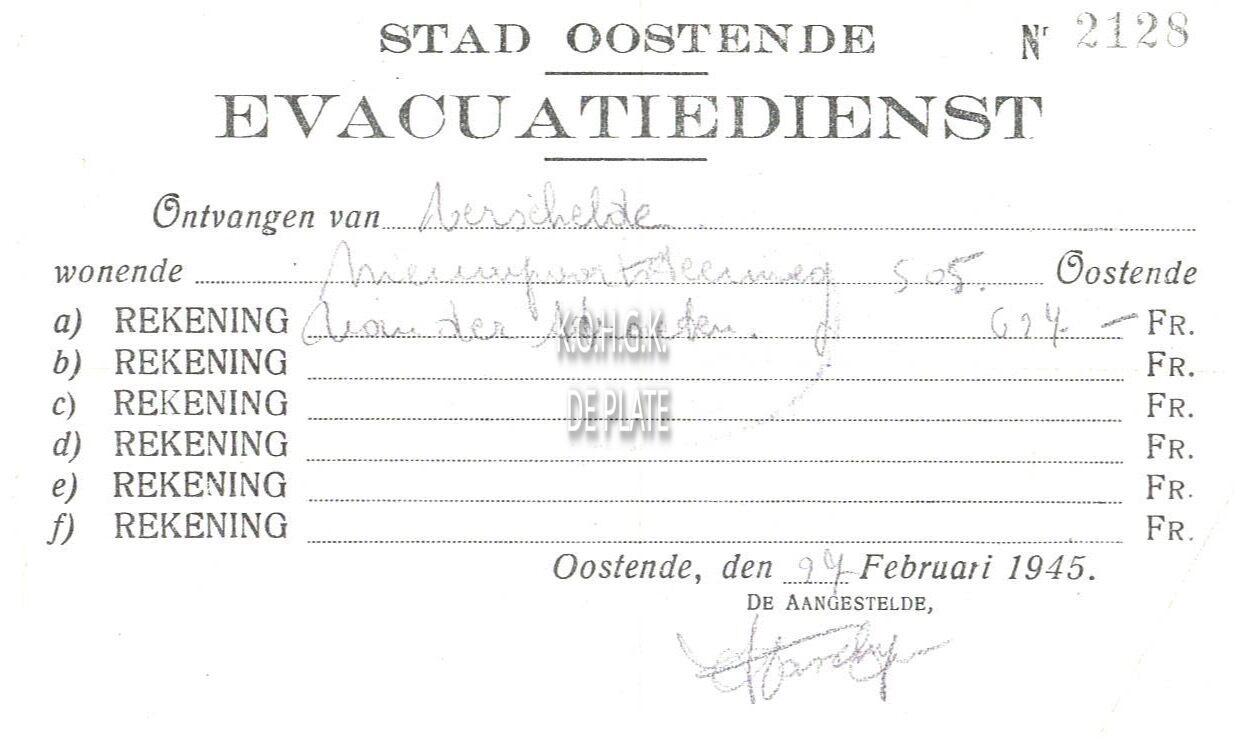 Betaling van Roger Verschelde aan de Evacuatiedienst