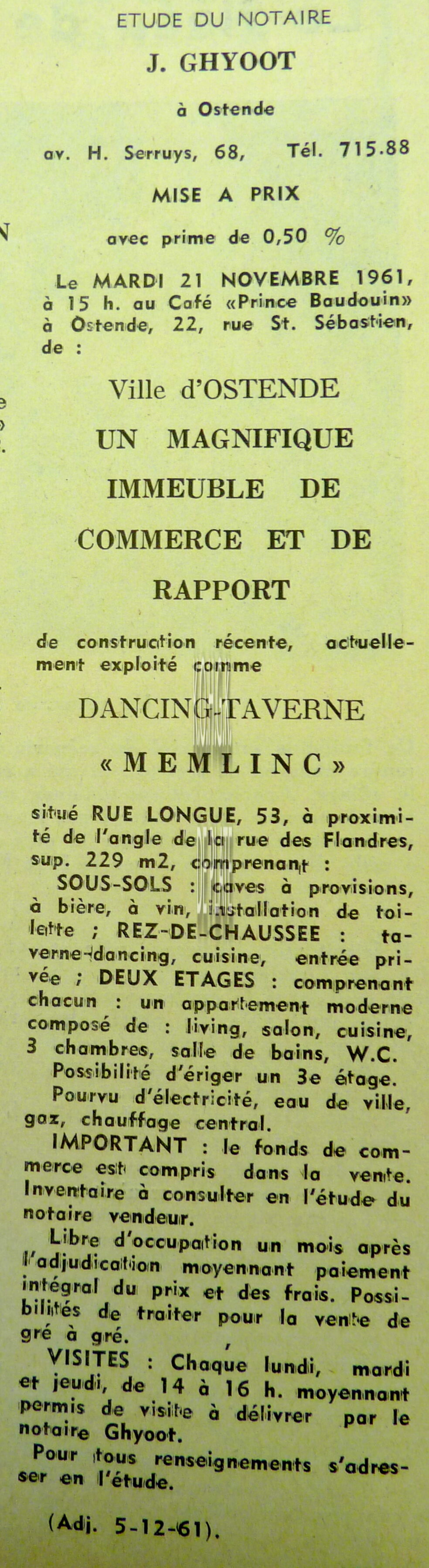 Trad ook op in de nightclub "La Champagne op 21 en 22/07/1961.