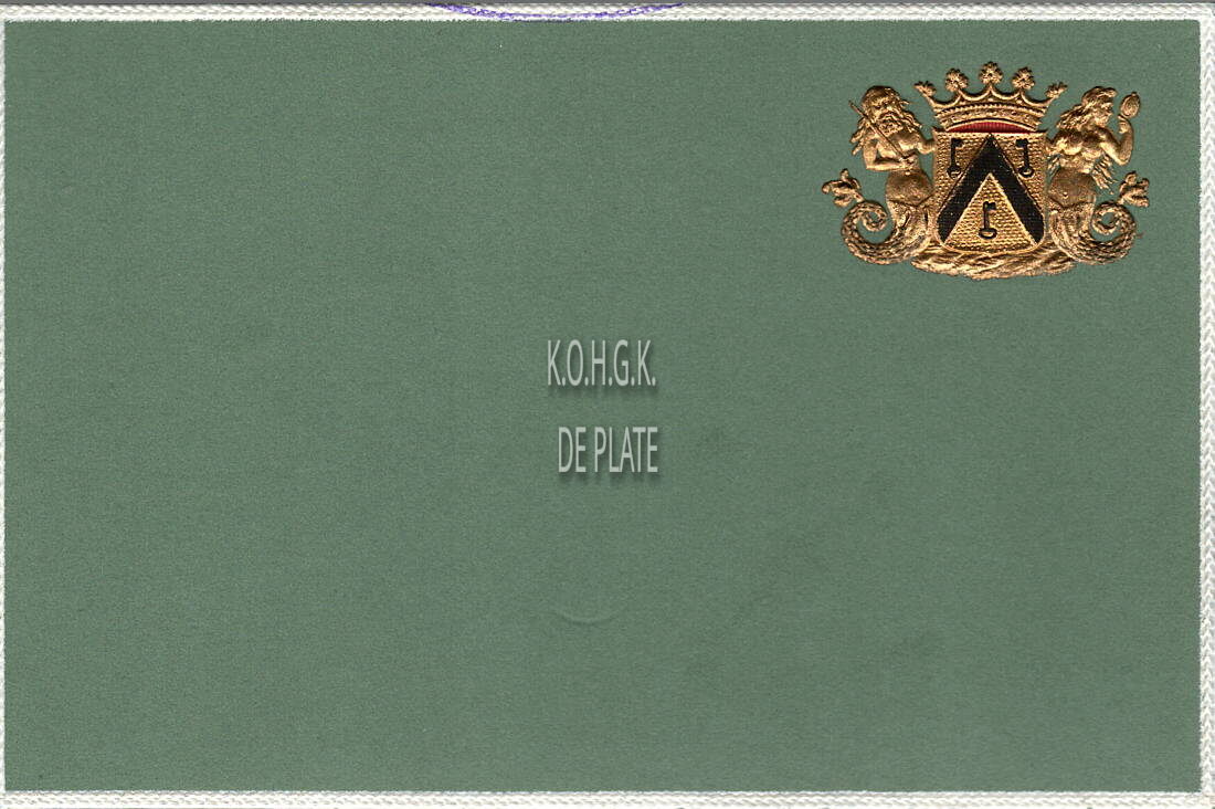 in blauw en groen met op de voorzijde in de rechterbovenhoek het wapen van Oostende