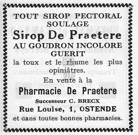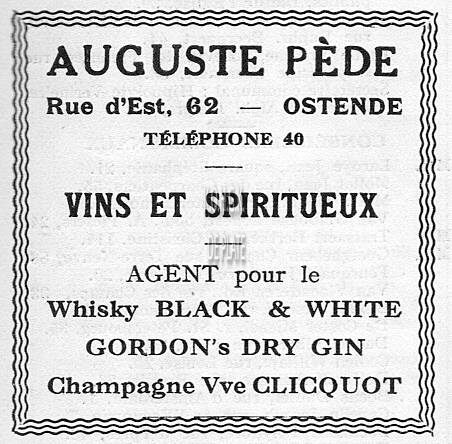 Advertentie : Auguste Pède. Vins et Spiritueux. Rue d'Est 62, Ostende