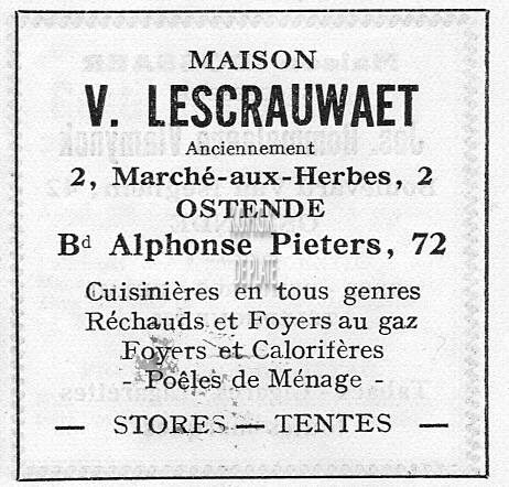 Advertentie : Maison Gentil Mares-Bentin. Rue de l'Eglise 28, Ostende