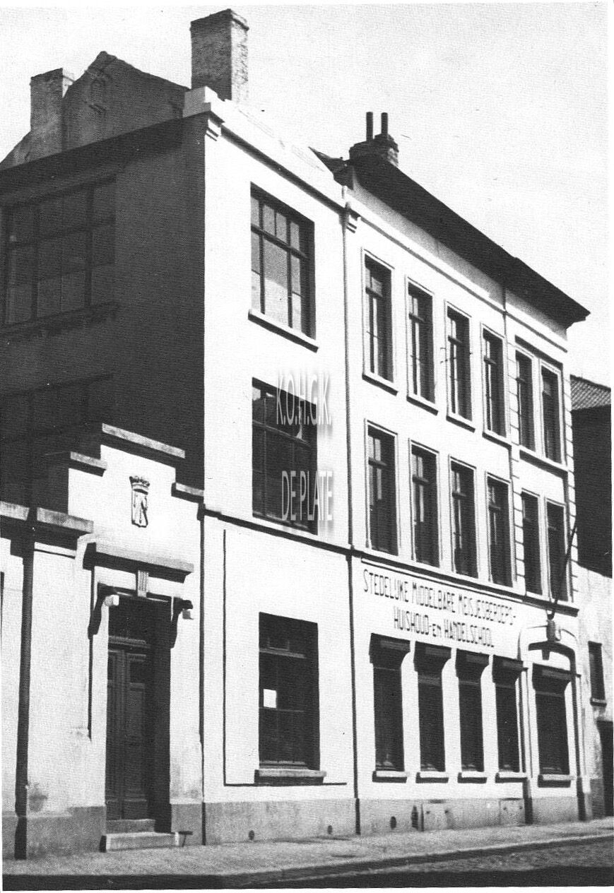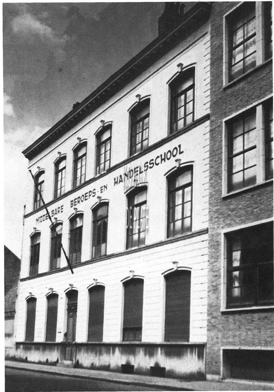 De vroegere Stedelijke Middelbare Beroeps- en Handelsschool gelegen in de Sint-Peterburgstraat.