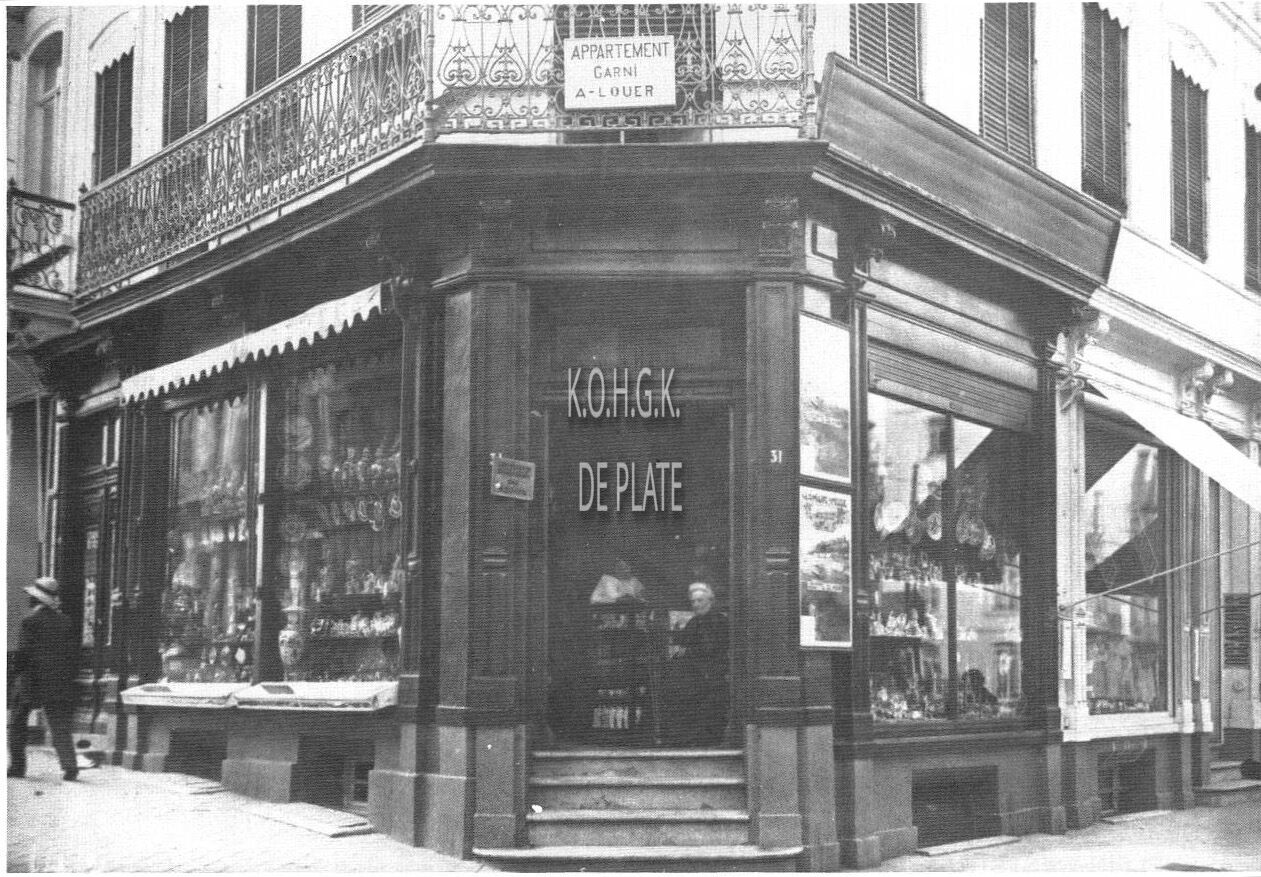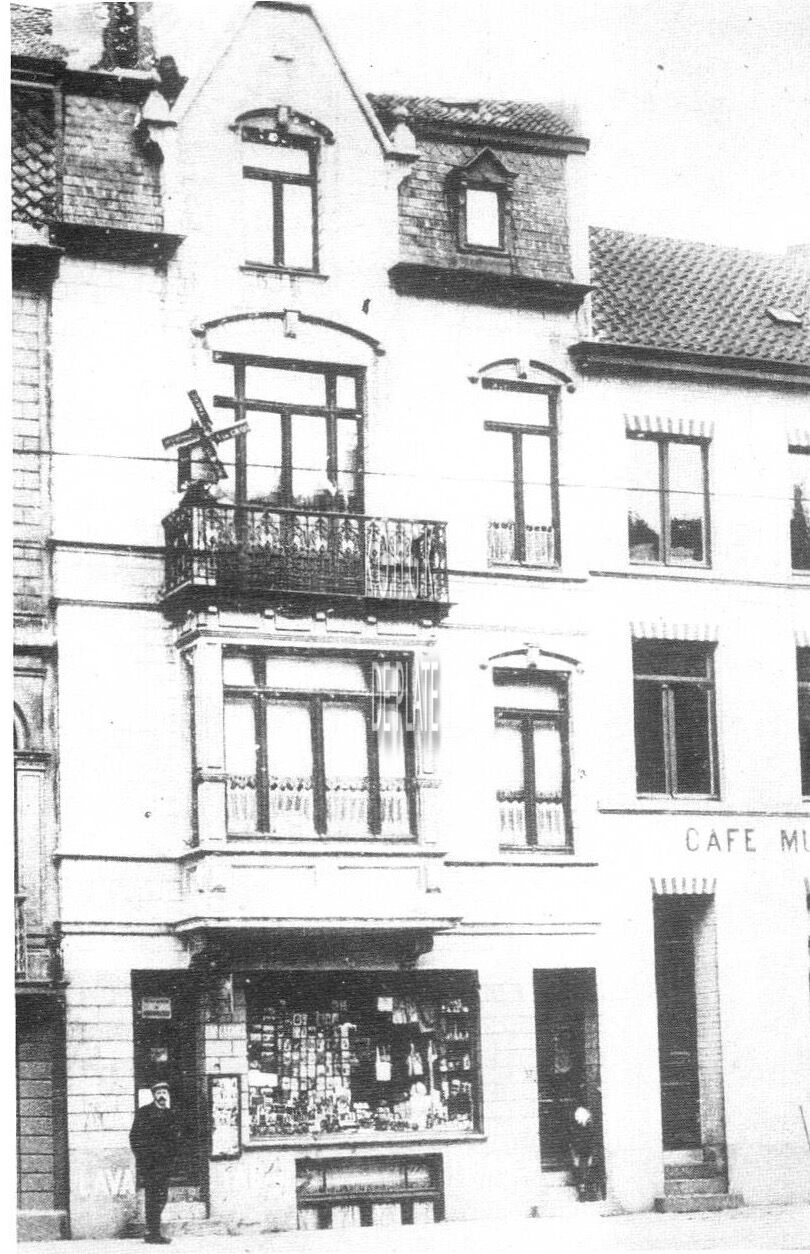 Rechts, de handelszaak "Au Meilleur Marché" van Kalter, Alfons Pieterslaan 1