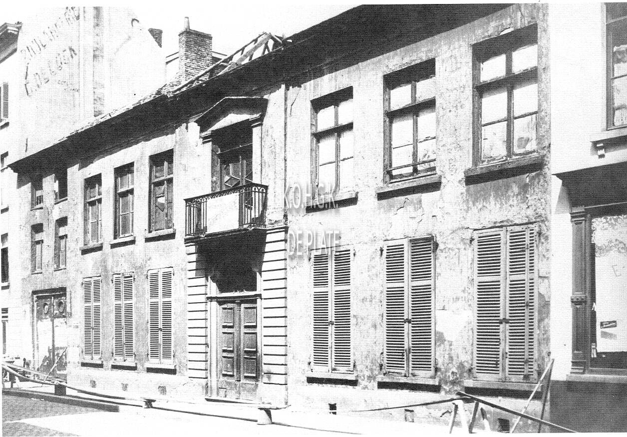 Gedeelte van de Louisastraat tussen de Langestraat (links) en de Brabantstraat (rechts). Dit gebouw maakte deel uit van het Koninklijk Paleis in de Langestraat nr. 69. De poort aan de linkerkant van het huis gaf toegang tot de Koninklijke Stallingen. Rond de eeuwwisseling woonde daar de hoofdpolitiecommissaris Romain Tilckens (sic). Het gebouw werd in 1924 door de Belgische Staat verkocht aan aannemer Jan Christiaens die het in 1925 liet slopen om er een hotel en zijn eigen woning te bouwen. Bovenaan links, de zijgevel van de gekende bakkerij Decock, gelegen op de hoek van de Langestraat.