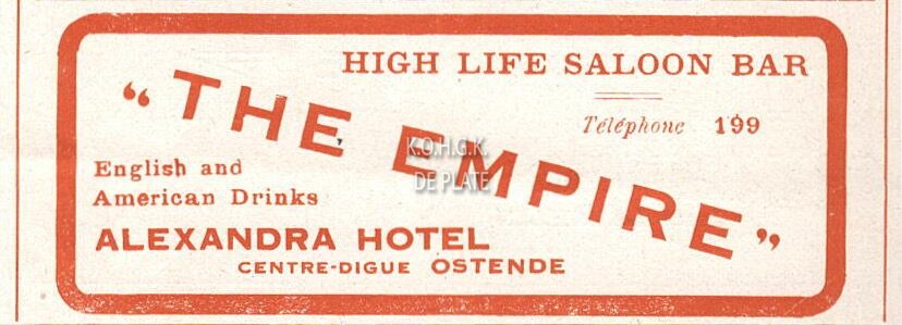 Advertentie : The Empire. High Life Saloon Bar. Alexandra Hotel. Centre-Digue, Ostende