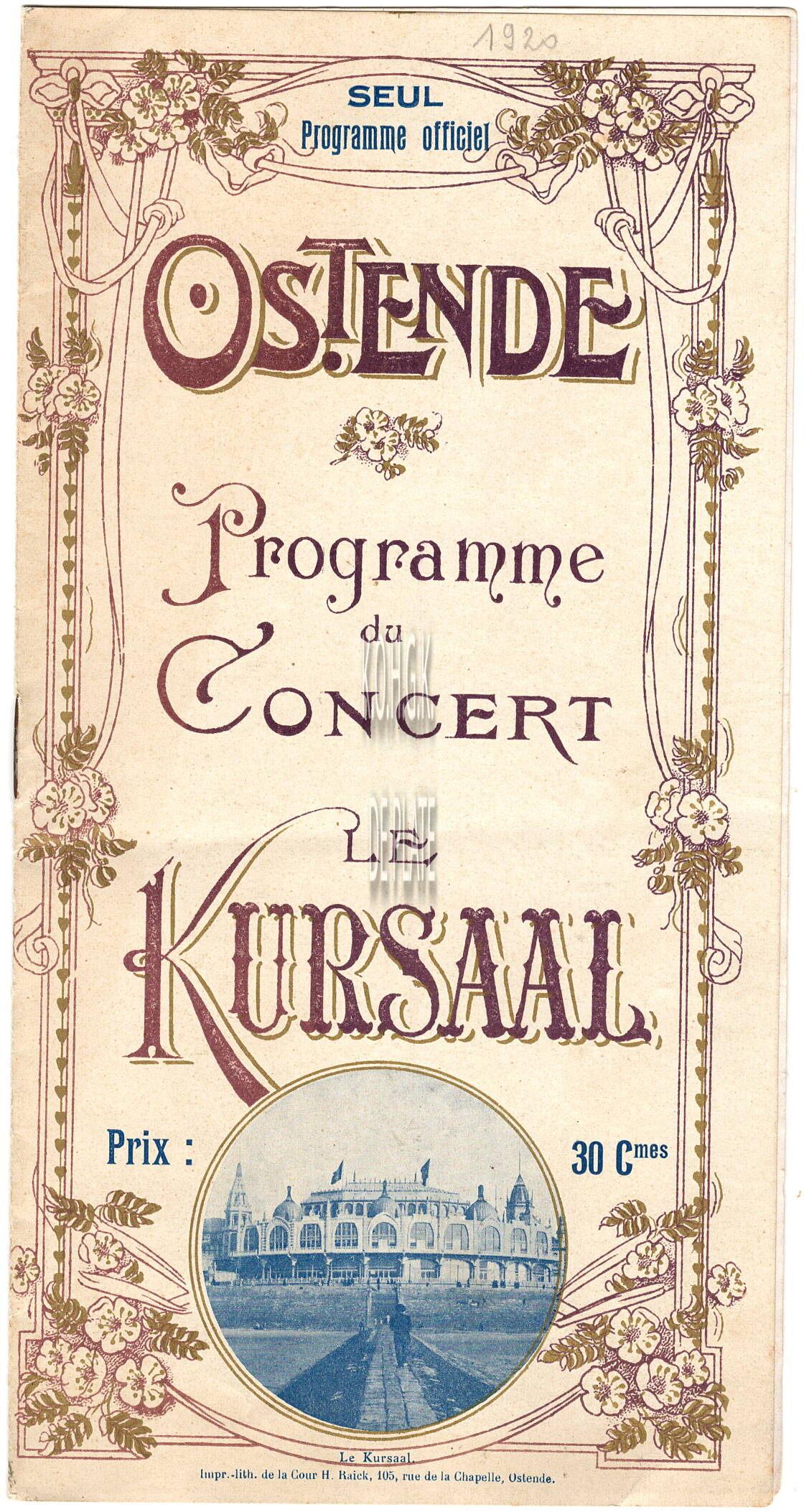Programma : Grand Concert Symphonique. Kursaal d'Ostende. 07/07/1920