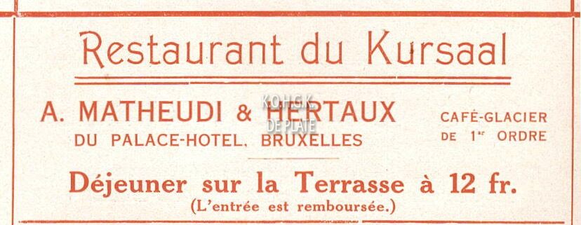 Advertentie : Restaurant du Kursaal. A. Matheudi & Hertaux.