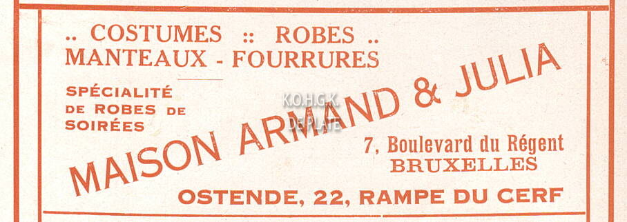 Advertentie : Maison Armand & Julia. Costumes - Robes - Manteaux - Fourrures. 22, Rampe de Cerf, Ostende