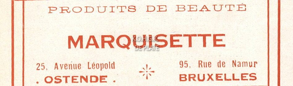 Advertentie : Marquisette. Produits de Beauté. 25, Avenue Léopold, Ostende
