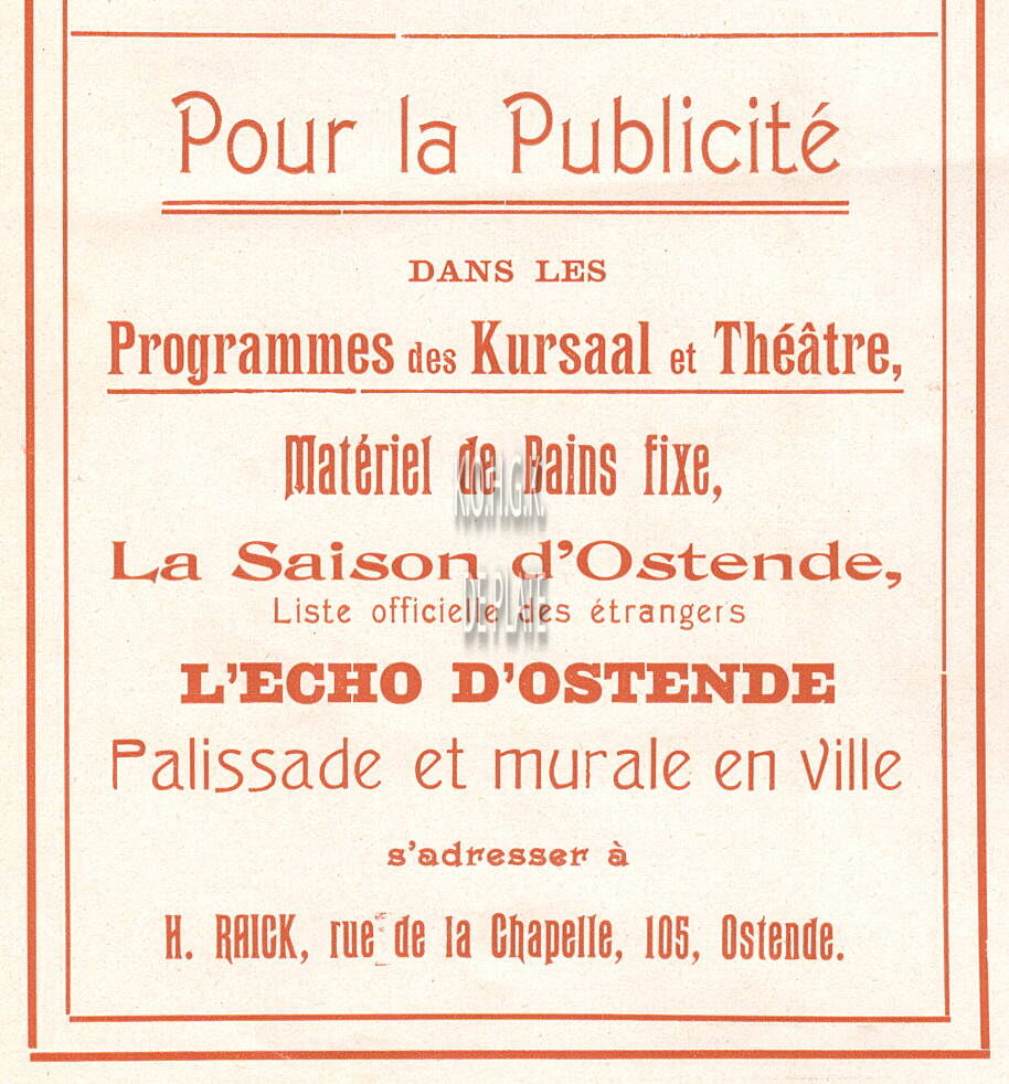Advertentie : Brias & Cie. Dépot Ostende, 34, Rue Royale