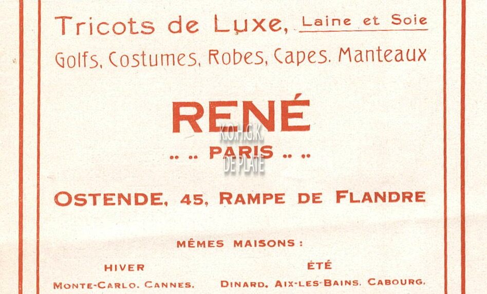Advertentie : René (Paris). Tricots de luxe... 45, Rampe de Flandre, Ostende