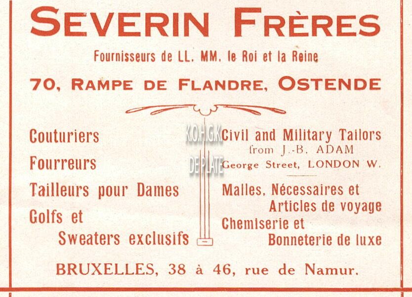 Advertentie : Severin Frères. Couturiers, Fourreurs... 70, Rampe de Flandre, Ostende.