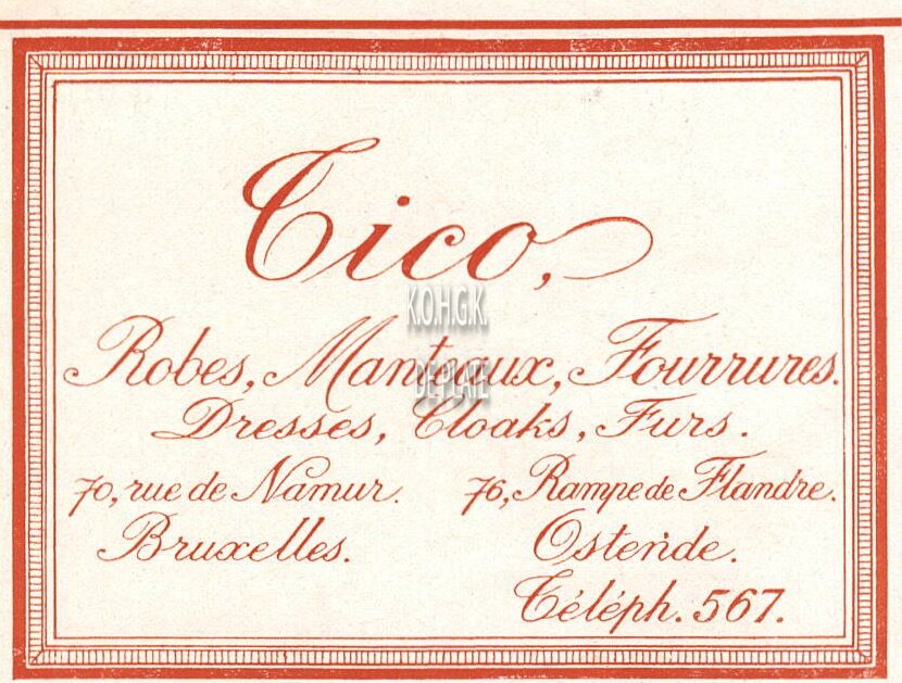 Advertentie : Tico. Robes, Manteaux, Fourrures... 76, Rampe de Flandre, Ostende