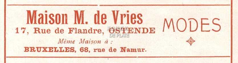 Advertentie : Maison M. de Vries. Modes. 17, Rue de Flandre, Ostende