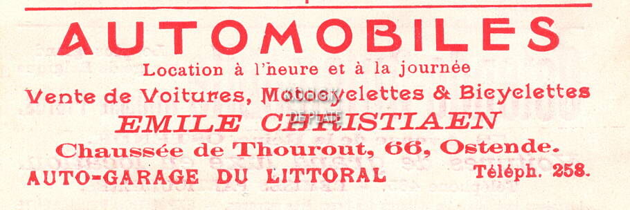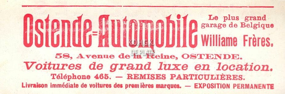 Advertentie : Ostende-Automobile .Williame Frères. 58, Avenue de la Reine, Ostende