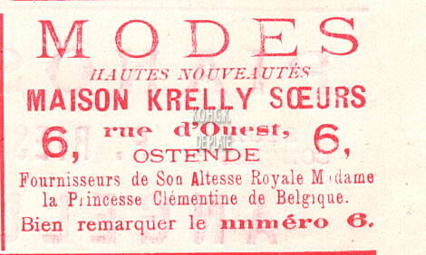 Advertentie : Maison Krelly Soeurs. Modes. 6, rue d'Ouest, Ostende