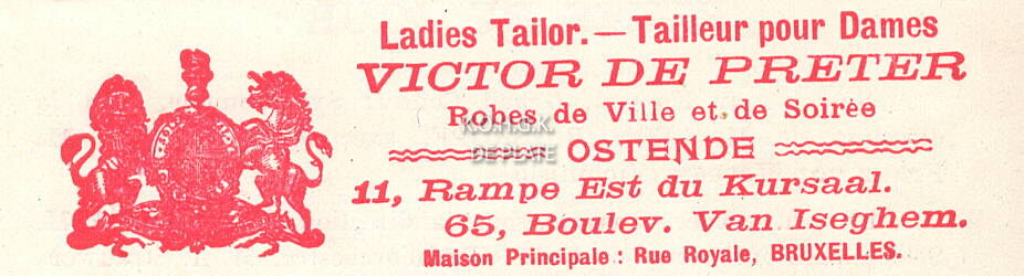 Advertentie : Victor De Preter. Tailleur pour Dames. 11, Rampe Est du Kursaal. 65, Boulevard Van Iseghem, Ostende