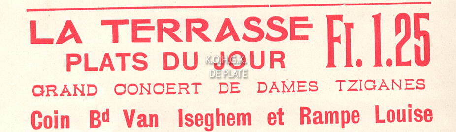 Advertentie : La Terrasse. Coin Bd Van Iseghem et Rampe Louise.