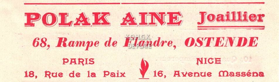 Advertentie : Polak Ainé. Joaillier. 68, Rampe de Flandre, Ostende