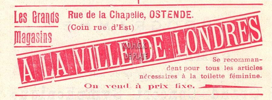 Advertentie : Les Grands Magasins "A La Ville de Londres". Rue de la Chapelle, Ostende.