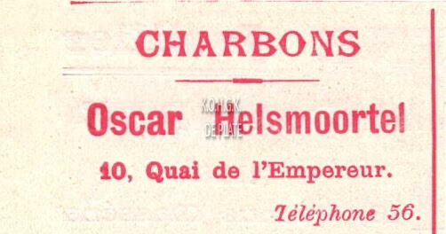 Advertentie : Oscar Helsmoortel. Charbons. 10, Quai de l'Empereur