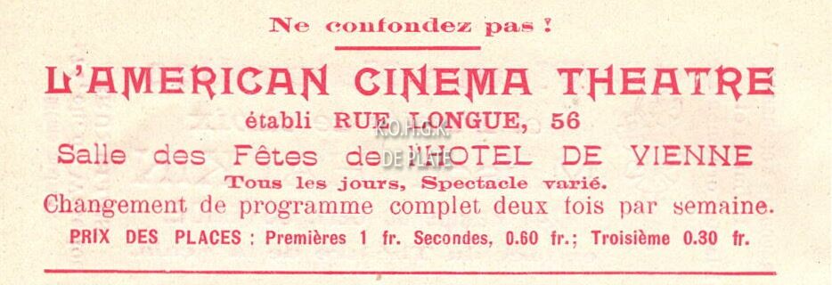Advertentie : L'American Cinema Theatre. Rue Longue 56