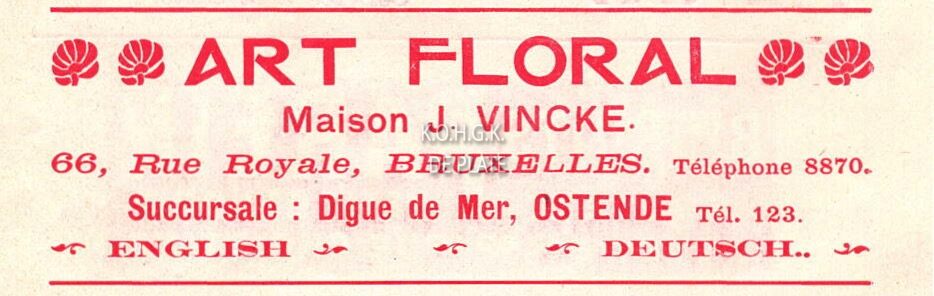 Advertentie : Art Floral. Maison J. Vincke. Succursale : Digue de Mer, Ostende