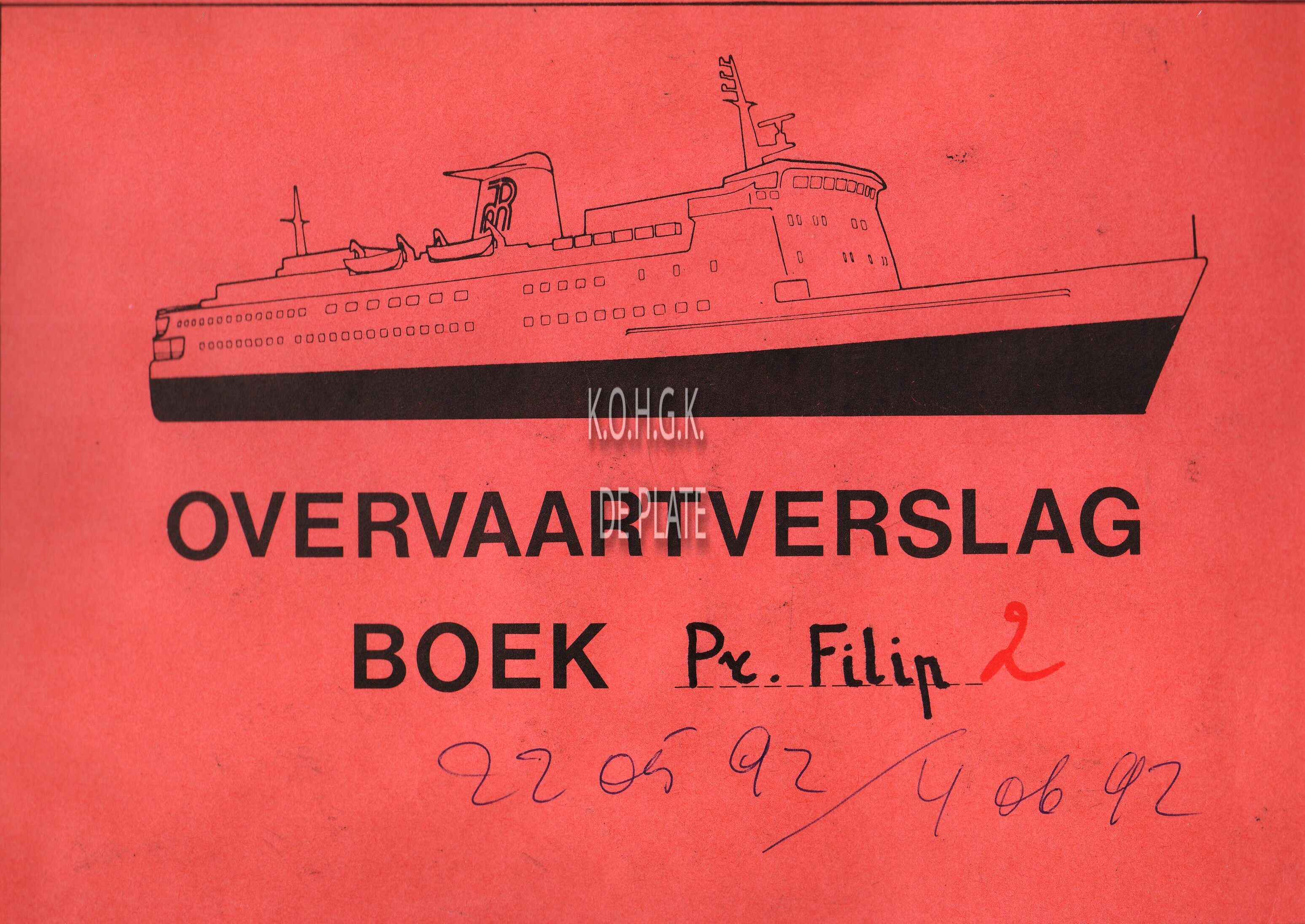 Carferry "Prins Filip". Overvaartverslag boek 1. 27/04/1992 - 22/05/1992