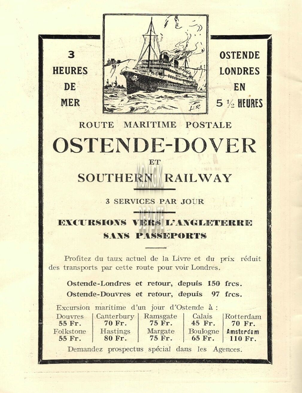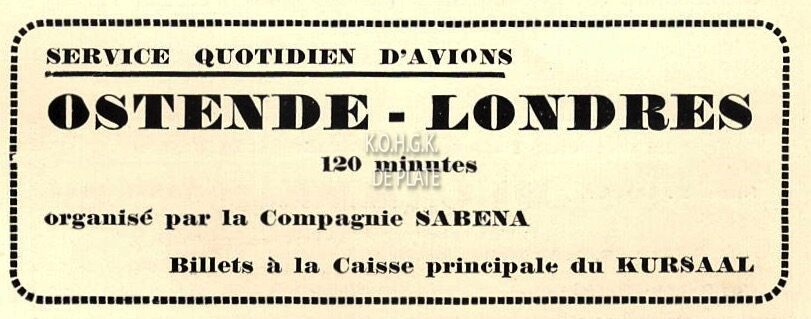 Advertentie : Service quotidien d'avions Ostende -Londres