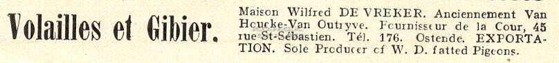 Advertentie : Maison Wilfried De Vreker. Volailes et gibier. 45, rue St.-Sébastien