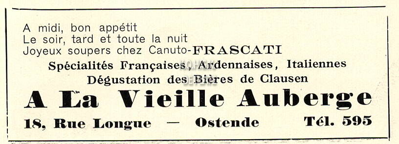 Advertentie : A la Vieille Auberge. 18, Rue Longue, Ostende
