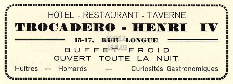 Advertentie : Hotel - Restaurant - Taverne "Trocadero - Henri IV", 15-17, rue Longue