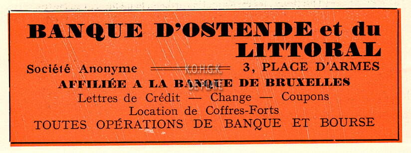 Advertentie : Banque d'Ostende et du Littoral. 3, Place d'Armes