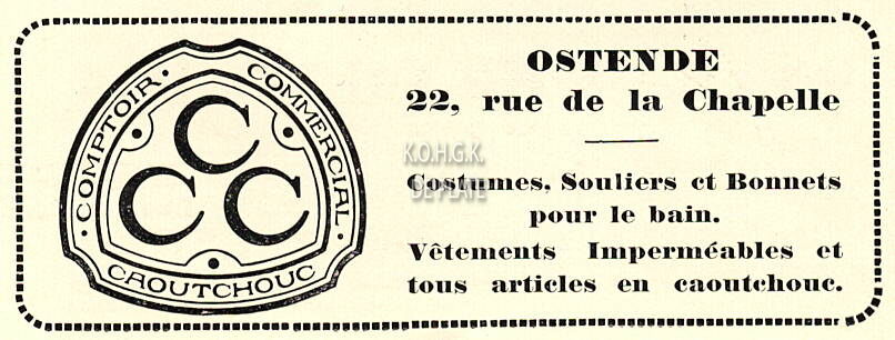 Advertentie : Comptoir Commercial Caoutchouc. C.C.C. 22, rue de la Chapelle, Ostende