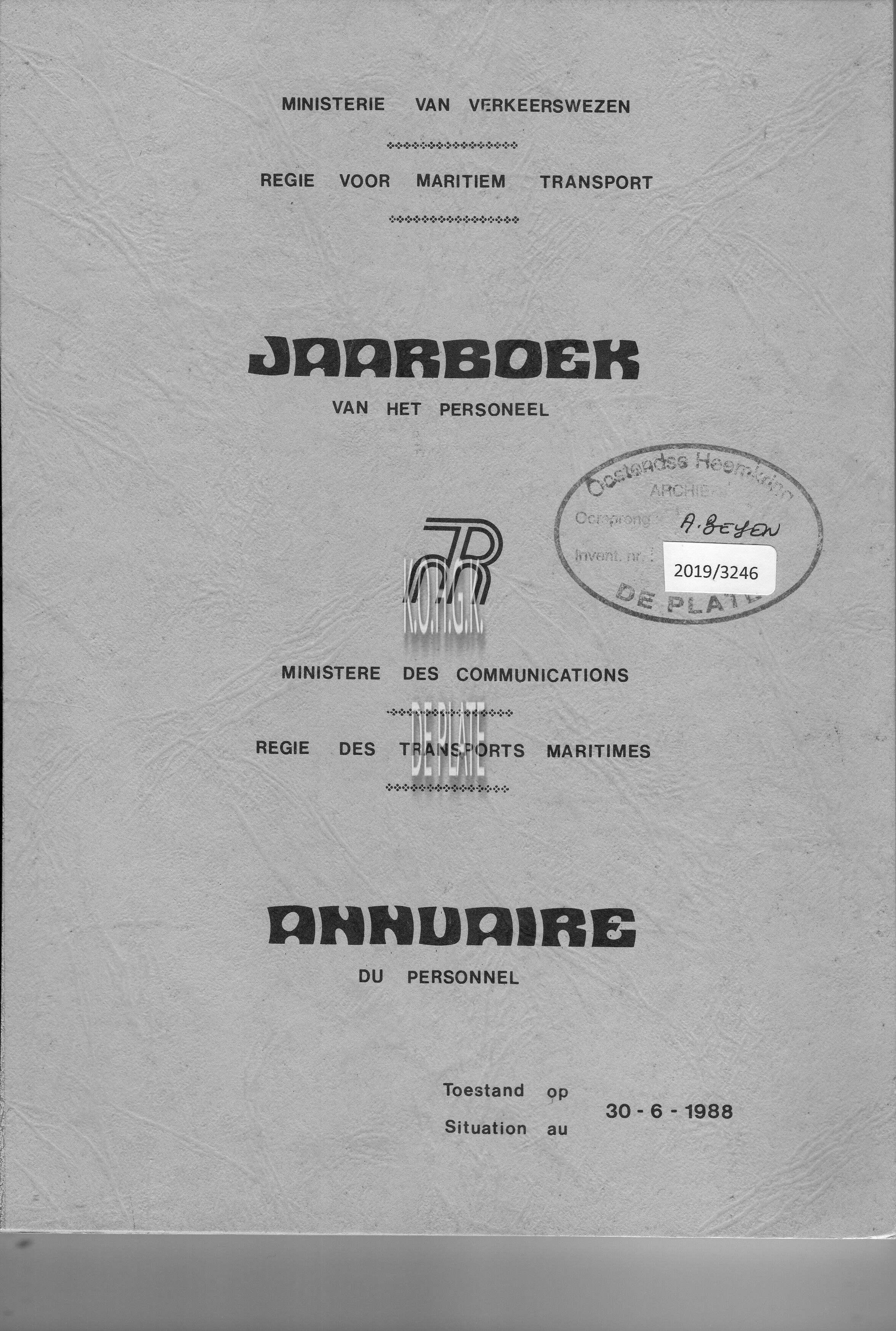 Ministerie van verkeerswezen. Regie voor maritiem transport.Jaarboek van het personeel ,toestand op 30-06-1988