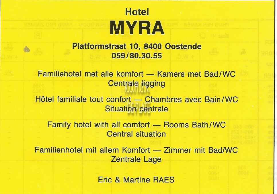 Advertentie : Hotel Myra. Platformstraat 10, Oostende