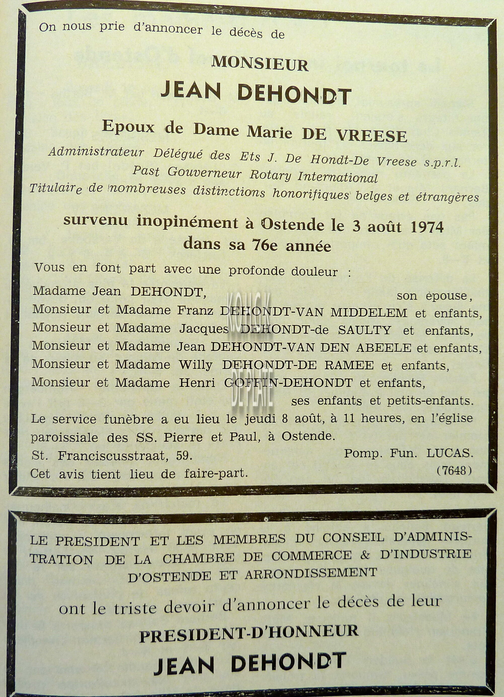DESSEIN JOZEF (1940-2011) (DEKEN)DEKENIJ OOSTENDE