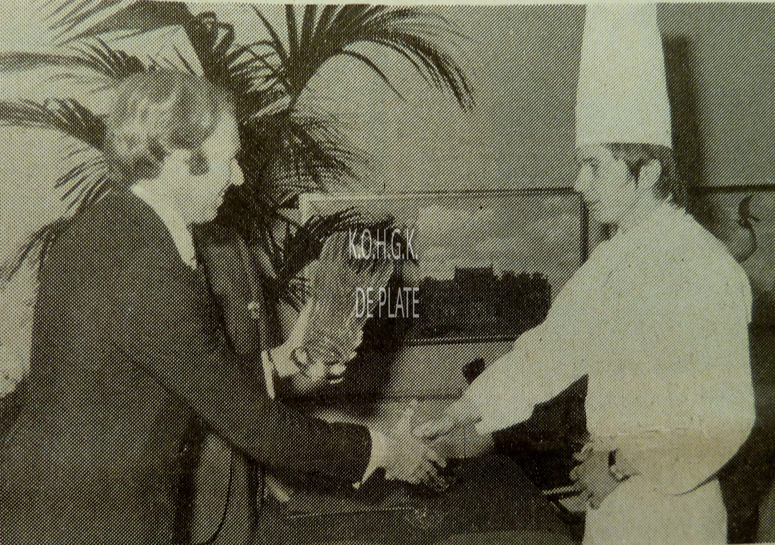 Foto : Guy Pauwels ontvangt de trofee "Beste Kok van België 1975" uit handen van de heer De Zutter, burgemeester van Knokke-Heist. Recept : kalfszwezerik