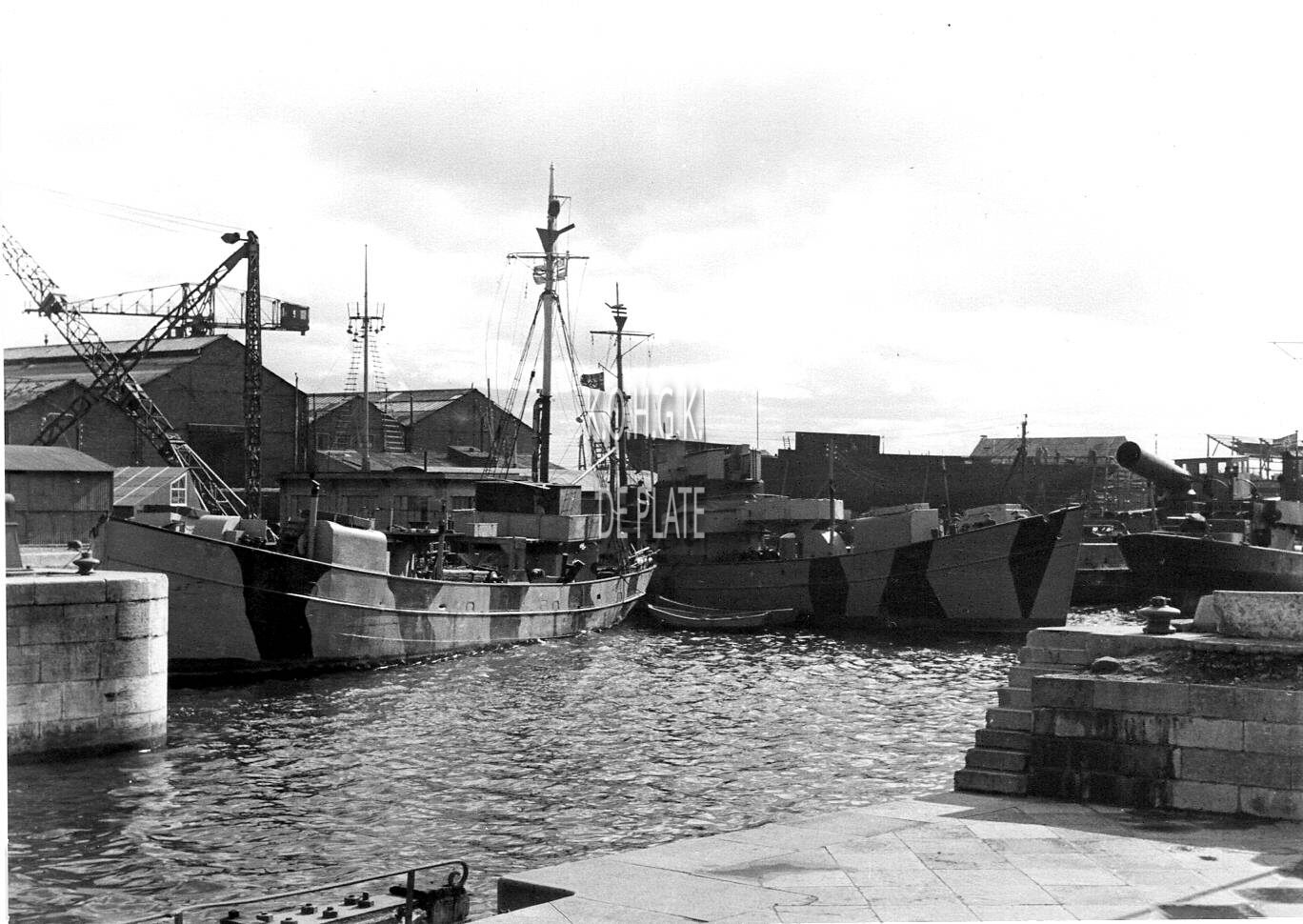 Vaartuigen van de Kriegsmarine in het Visserijdok aan de scheepswerf Seghers en op de Slipway. - (coll. Bundesarchiv)