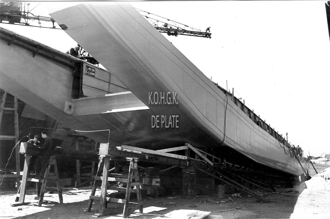 TWEEDE WERELDOORLOG IN FOTO'SBELIARD CRIGHTON (SCHEEPSWERF)NIJVERHEID ; SCHEEPSBOUWKRIEGSMARINEMILITAIRE GESCHIEDENISKRANEN