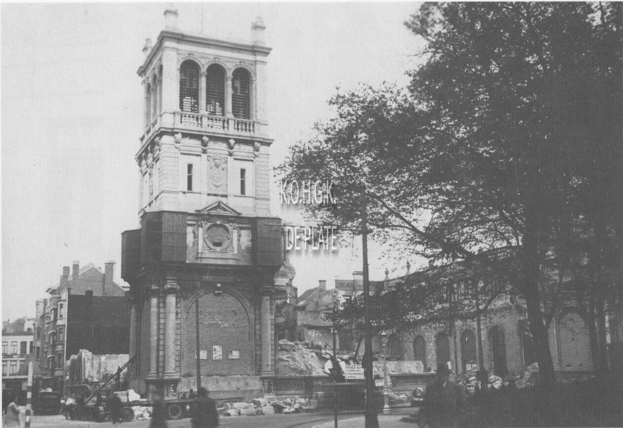 De puinen van het hoofd-postgebouw. Het postgebouw werd op het einde van de Tweede Wereldoorlog door de terugtrekkende Duitse bezetters gedynamiteerd. Op dezelfde plaats werd tussen 1950 en 1955 het nieuwe hoofd-postkantoor gebouwd.