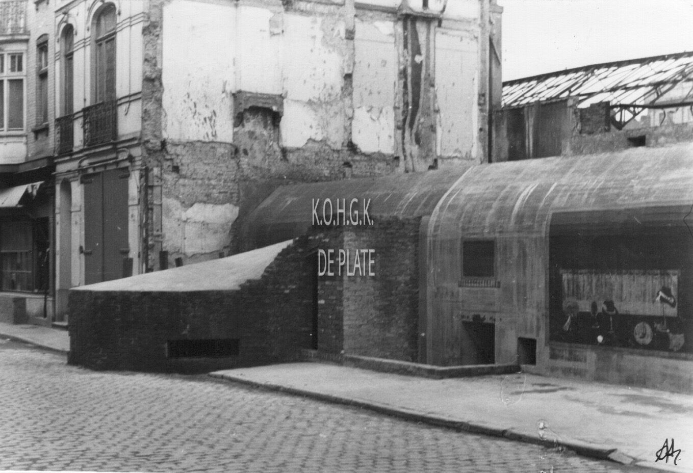 Bunker en mitrailleursnest in de Wittenonnenstraat rechtover het postgebouw. (coll. Bundesarchiv)