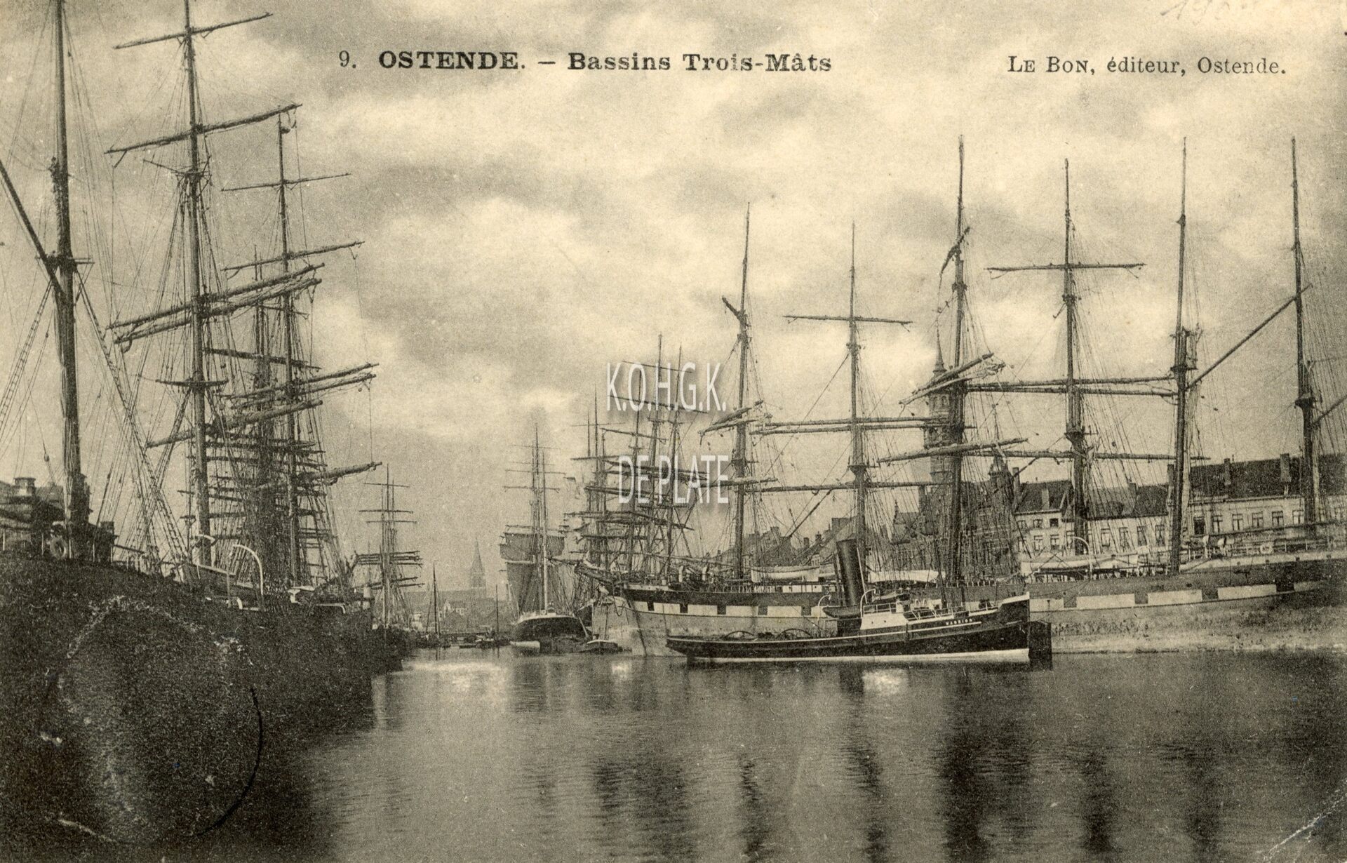 Le Bon 9. - Ostende. - Bassins Trois-Mâts. - Met invoer van hout uit Noorwegen, kolen uit Groot-Brittannië, nitraten (meststoffen) uit Chili.