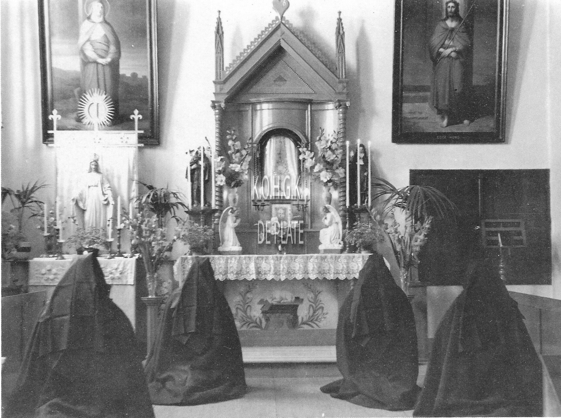 Stemmig beeld van de kapel van het klooster der Arme Claren Colettinen. Het gebouw werd gesloopt nadat het nieuw klooster, gelegen aan de Mariakerkelaan in 1959 in gebruik werd genomen.